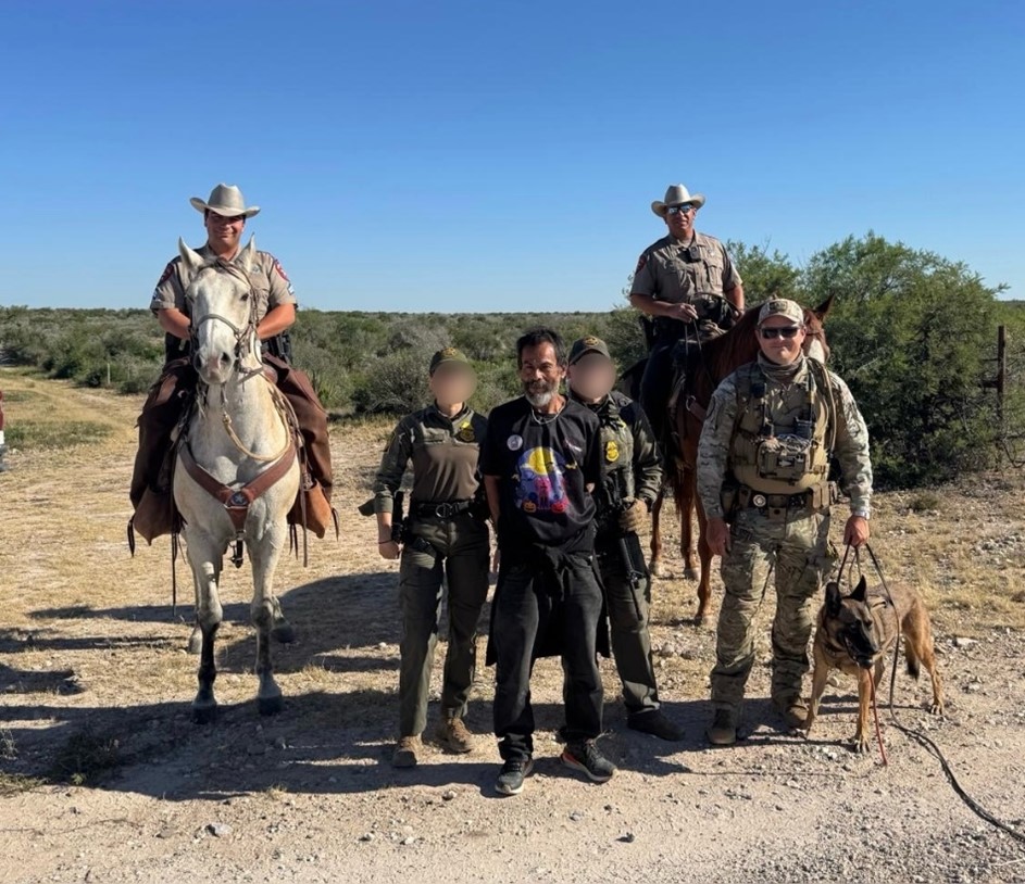 On Oct. 19, 2025, just after 9:00 a.m., DPS’ Border Mounted Patrol Unit, along with K-9 Arya and her handler, responded to a Drawbridge camera activation by a male subject on a private ranch in Kinney Co. Border Mounted Patrol Troopers and K-9 Arya tracked and located the male subject hiding within the thick brush. The male subject, identified as Adan Delgado-Ortega, 52, of Mexico, was taken into custody.
