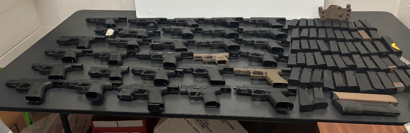 WESLACO – Texas Department of Public Safety (DPS) Criminal Investigations Division (CID) Special Agents seized dozens of handguns and weapons accessories destined for Mexico during a vehicle inspection while working Operation Lone Star (OLS) in Hidalgo Co. last week.