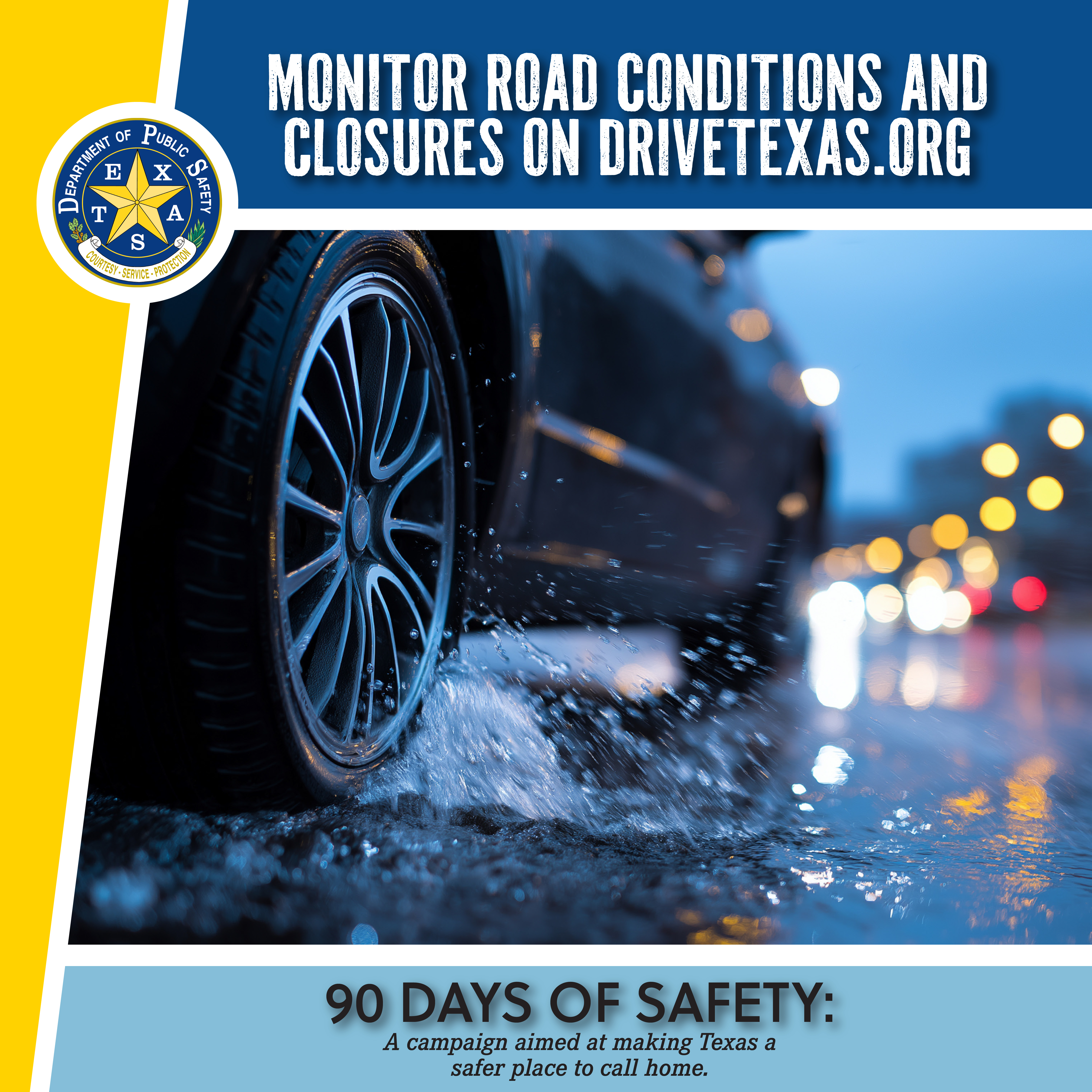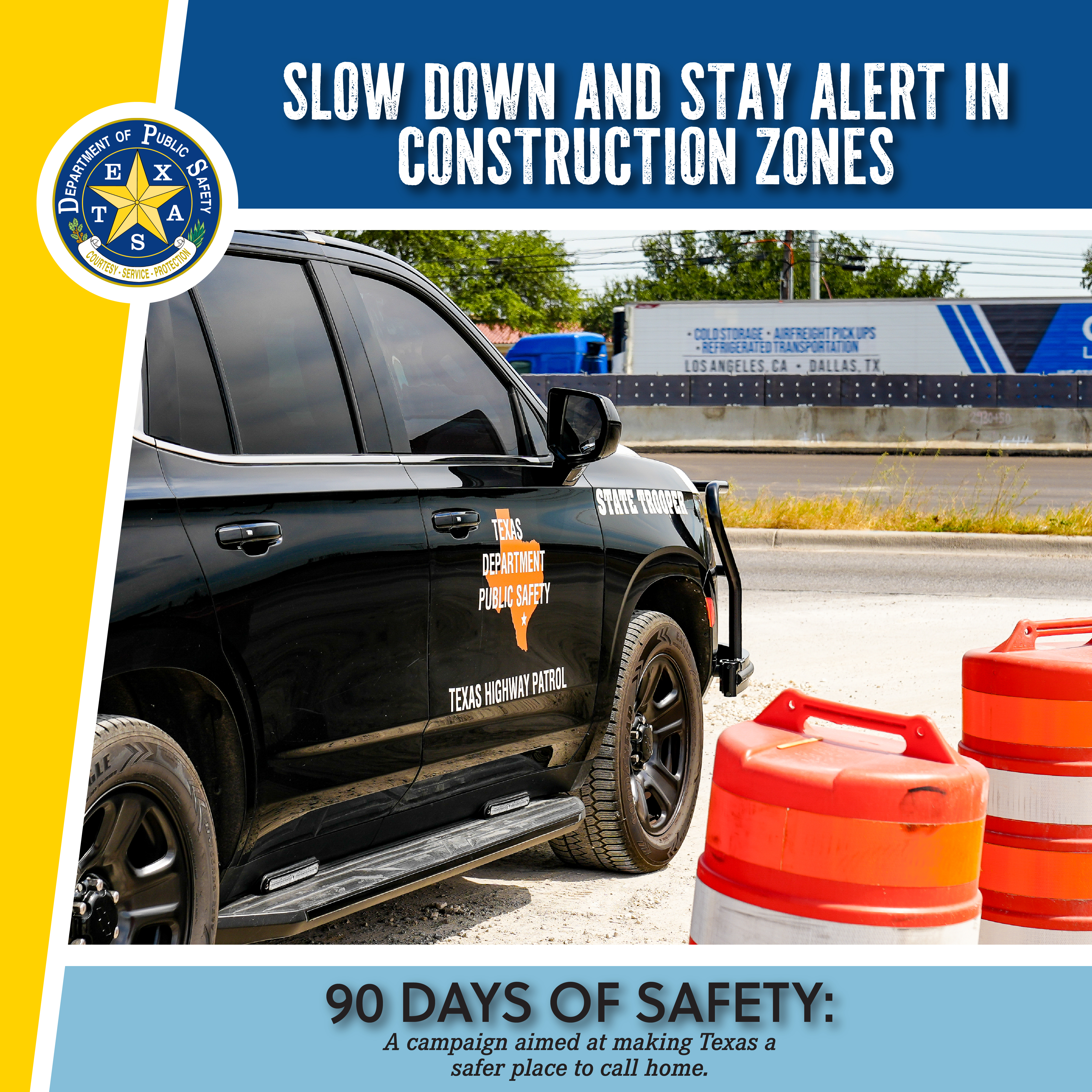 DPS’ 90 Days of Safety is a three-part campaign, broken down into three 30-day themes, with each theme highlighting different ways the public can take an active role to make Texas a safer place to call home.